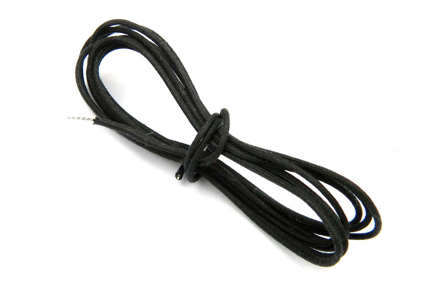 Die Gewebeisolierung wird einfach nach oben gedrückt, um den mittleren Anschlussdraht freizulegen. Leiterformat made in usa Typ 22 AWG Einzelader, flexibel mit weißem Celanese-Mantel und einer äußeren Isolierung aus gewachster Baumwolle vom Typ „Wachstopf“ in Schwarz. Durchmesser: 1,78 mm, Länge 2 Meter.