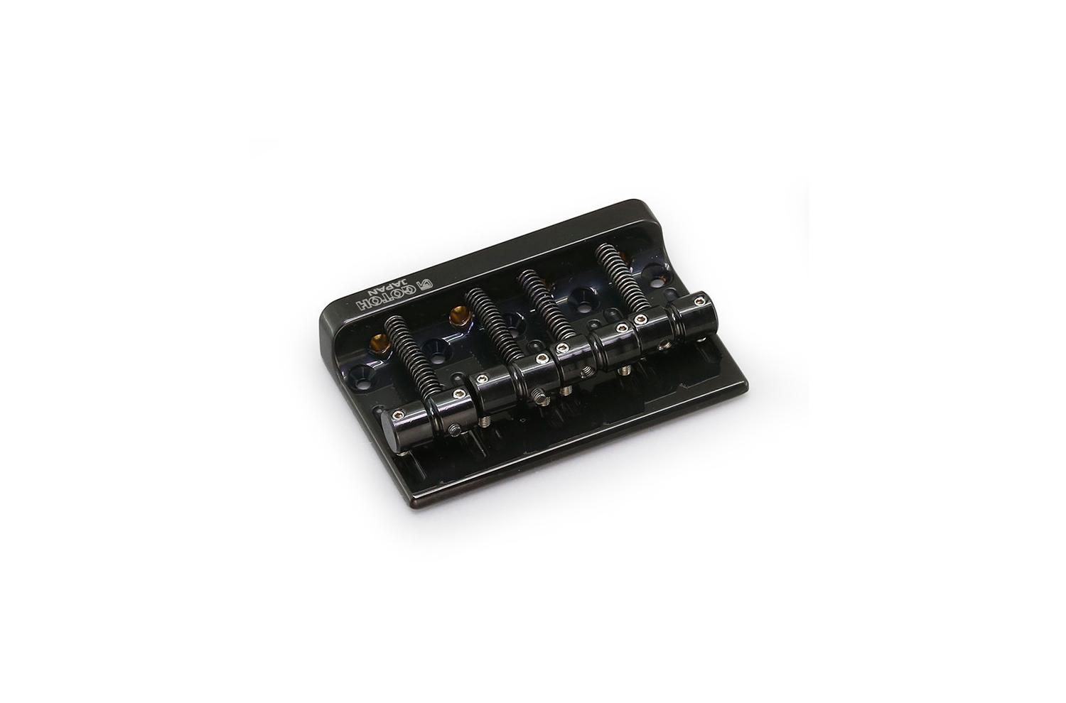 Gotoh Satin Black Staffelei Brücke für Jazz- und Precision-Bass. 4 vintage -Saiten, Messingsättel und -platte, erhältlich in chrome , gold oder Satin-Schwarz-Version, hergestellt in Japan.