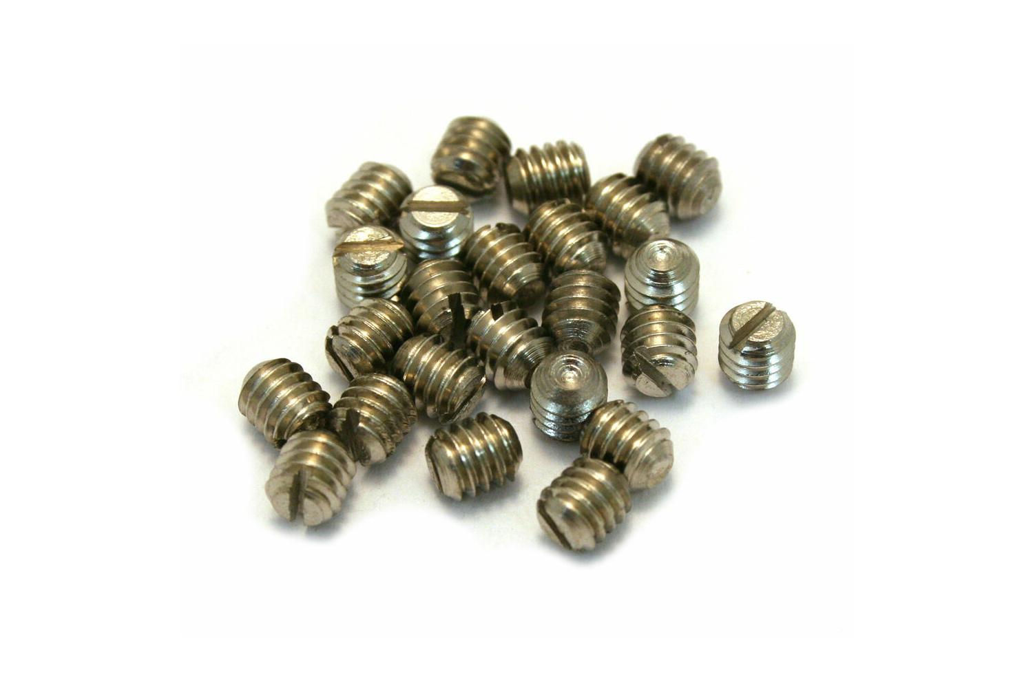 Fender side screws for Telecaster Precision Bass dome or barrel knob , tightening and holding Tele® Jazz Bass®, Jaguar and Jazz Master. Sold in packs of 24 standard USA thread screws for all Fender Tele/PrecisionBass knobs in steel or chrome-plated brass, aluminum and nickel.