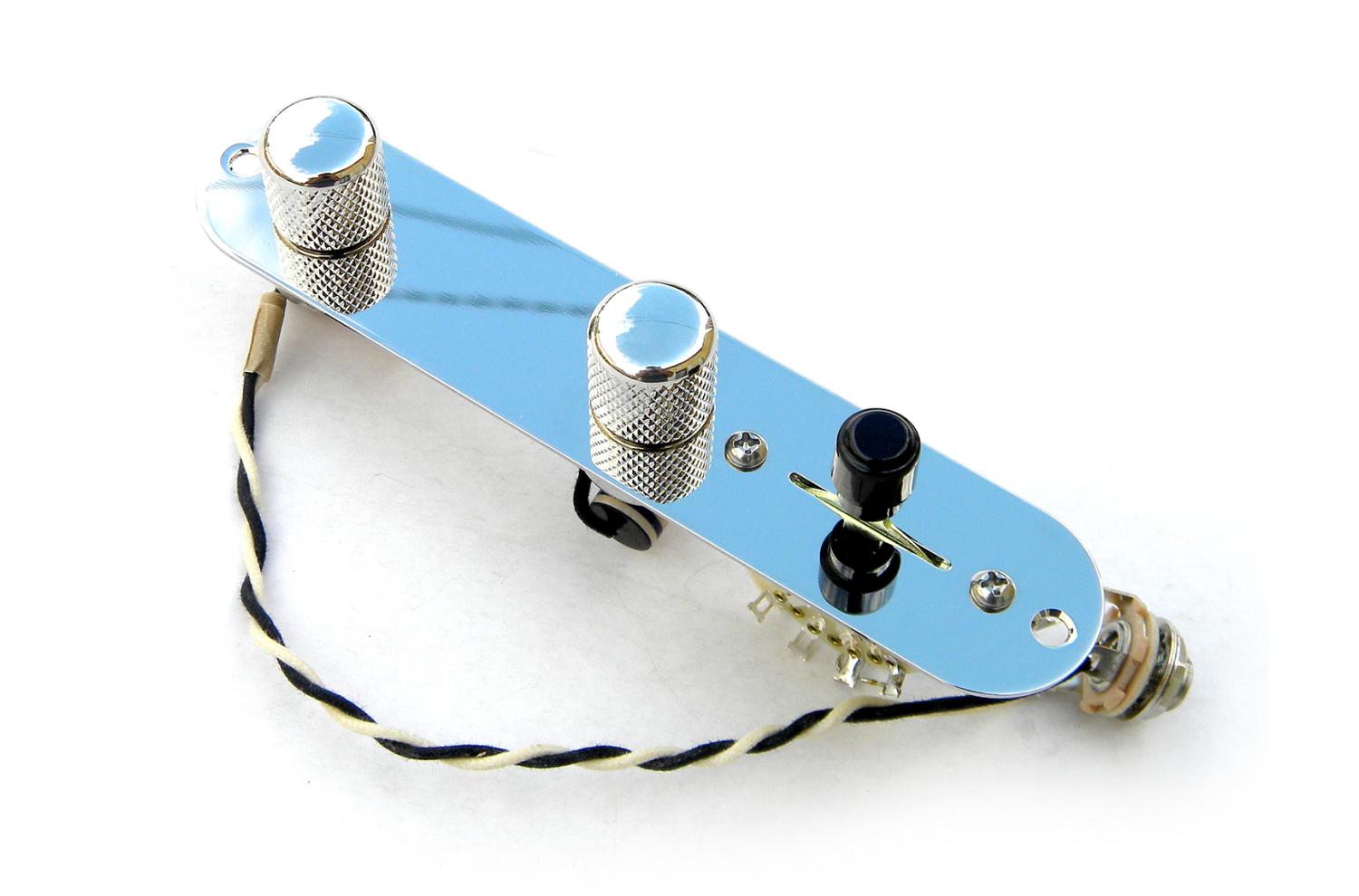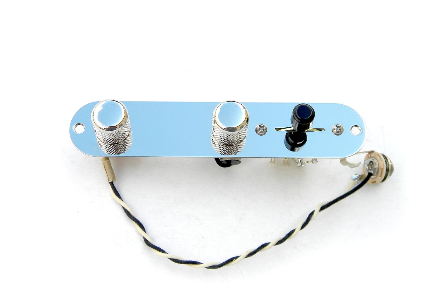 Pre-wired Fender Telecaster 60's Custom Shop 3 ways switch standard plate. Classic 3 positions Telecaster controller circuit compatible with all vintage single coils Telecaster pickups of any brand. CRL USA 3 positions selector switch, CTS 250K master volume and 250K audio/log tone for all positions.