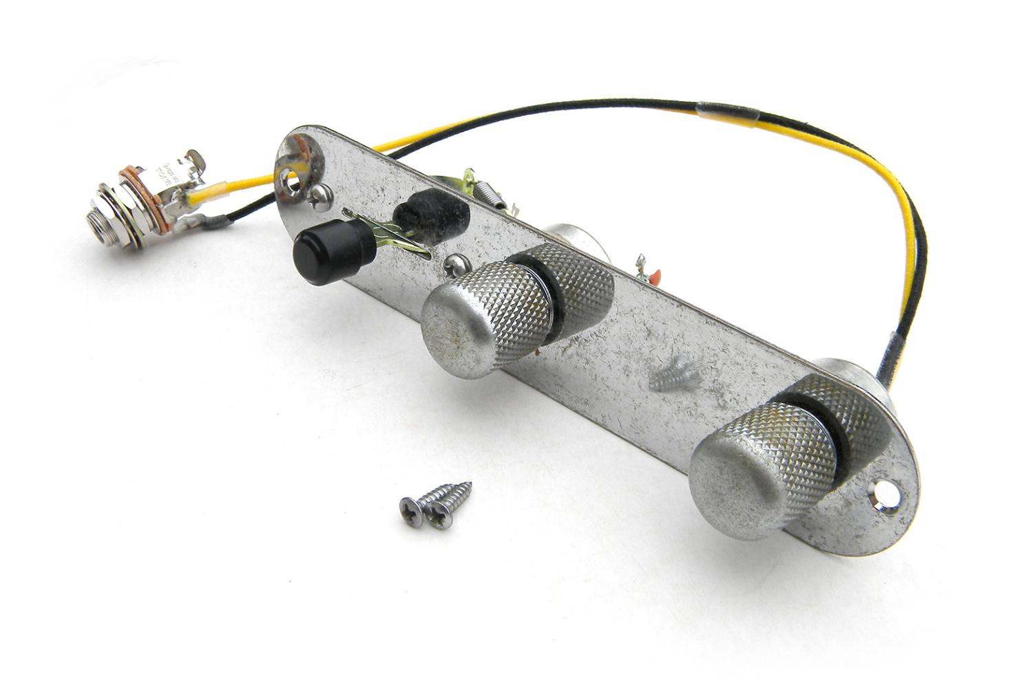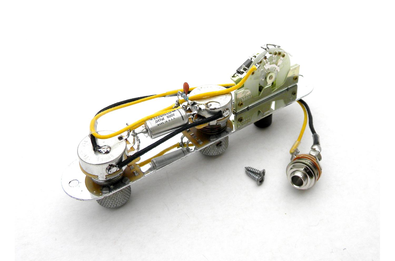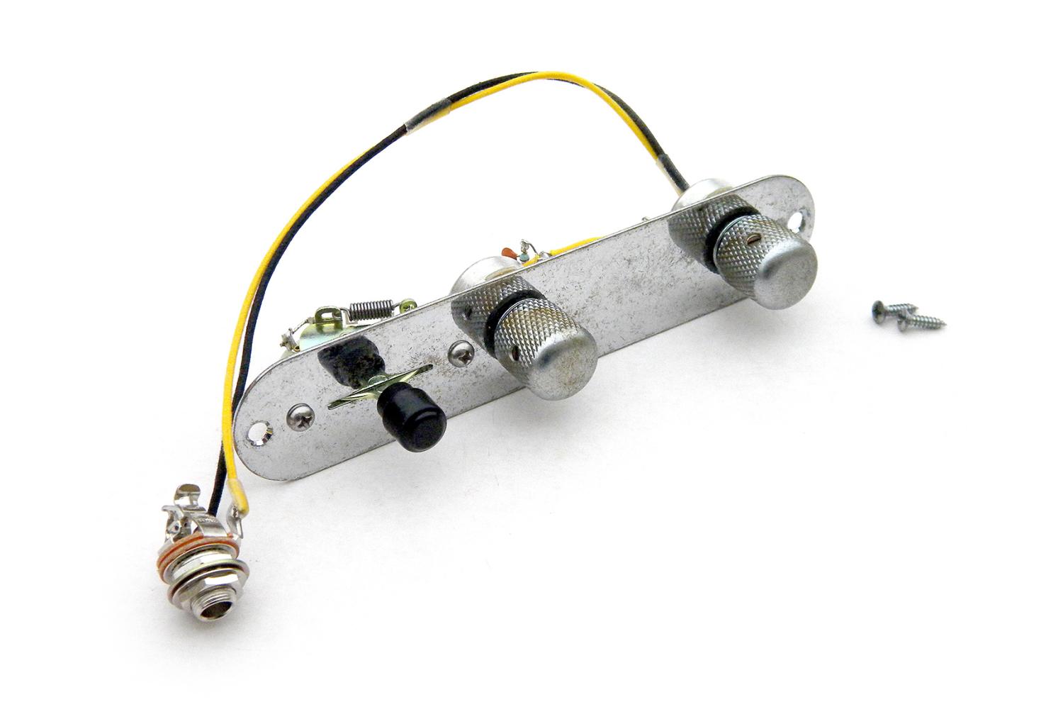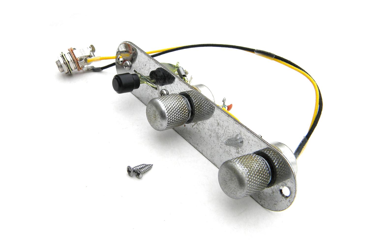 The classic 3-way Telecaster controller is assembled using genuine Fender and Gotoh parts: roadworn nickel " aged relic " control plate, CRL USA selector switch, Fender roadworn 50's style selector knob , two dome-sized roadworn aged nickel potentiometer knobs Gotoh brand.