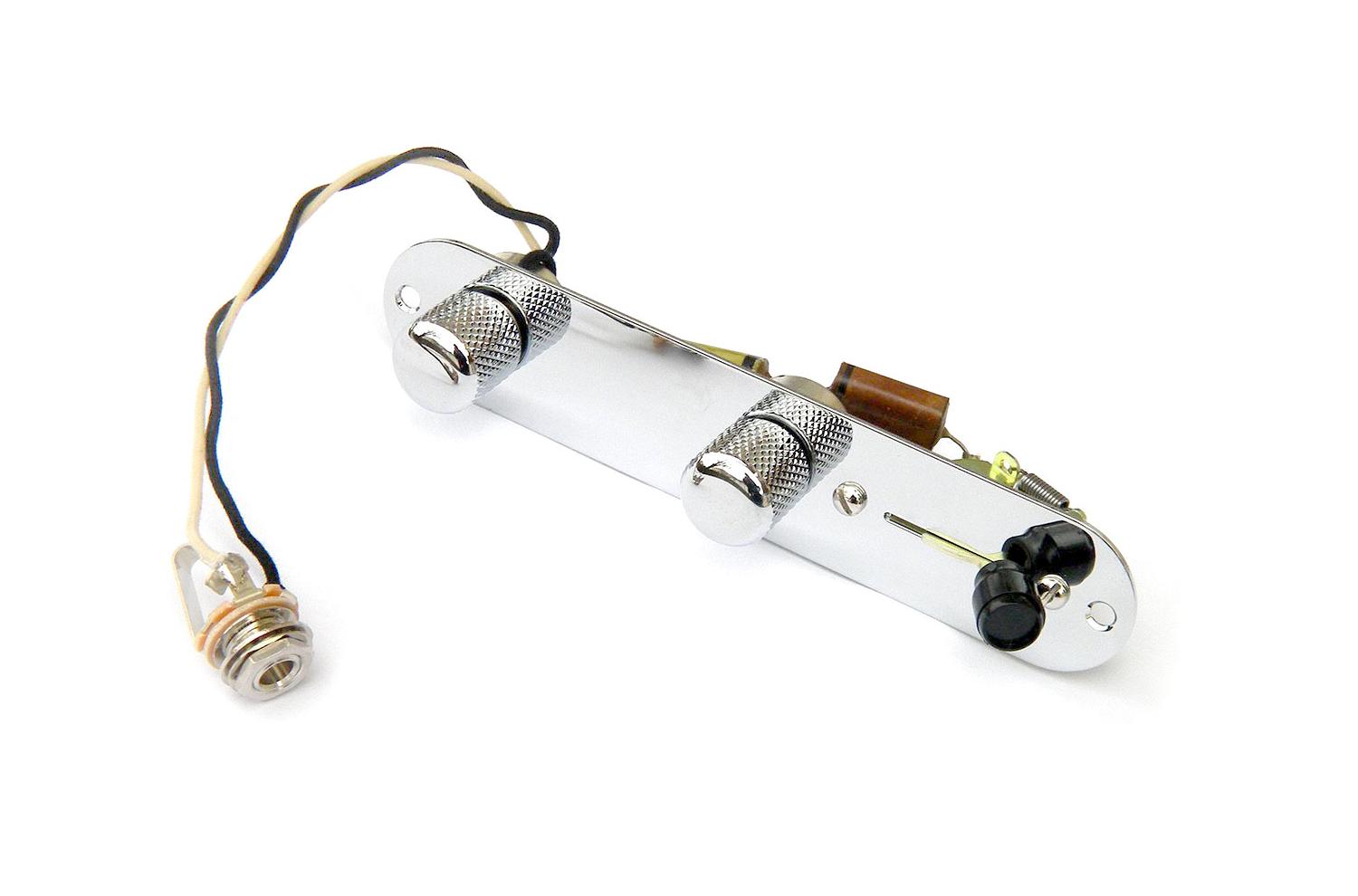 Pre-wired Fender American Vintage 1952-55 Reissue Telecaster type control plate with CTS 250/300K Audio potentiometers, 3-position CRL selector, barrel or dome buttons, vintage wiring, Cornell Dubilier PIO capacitor.