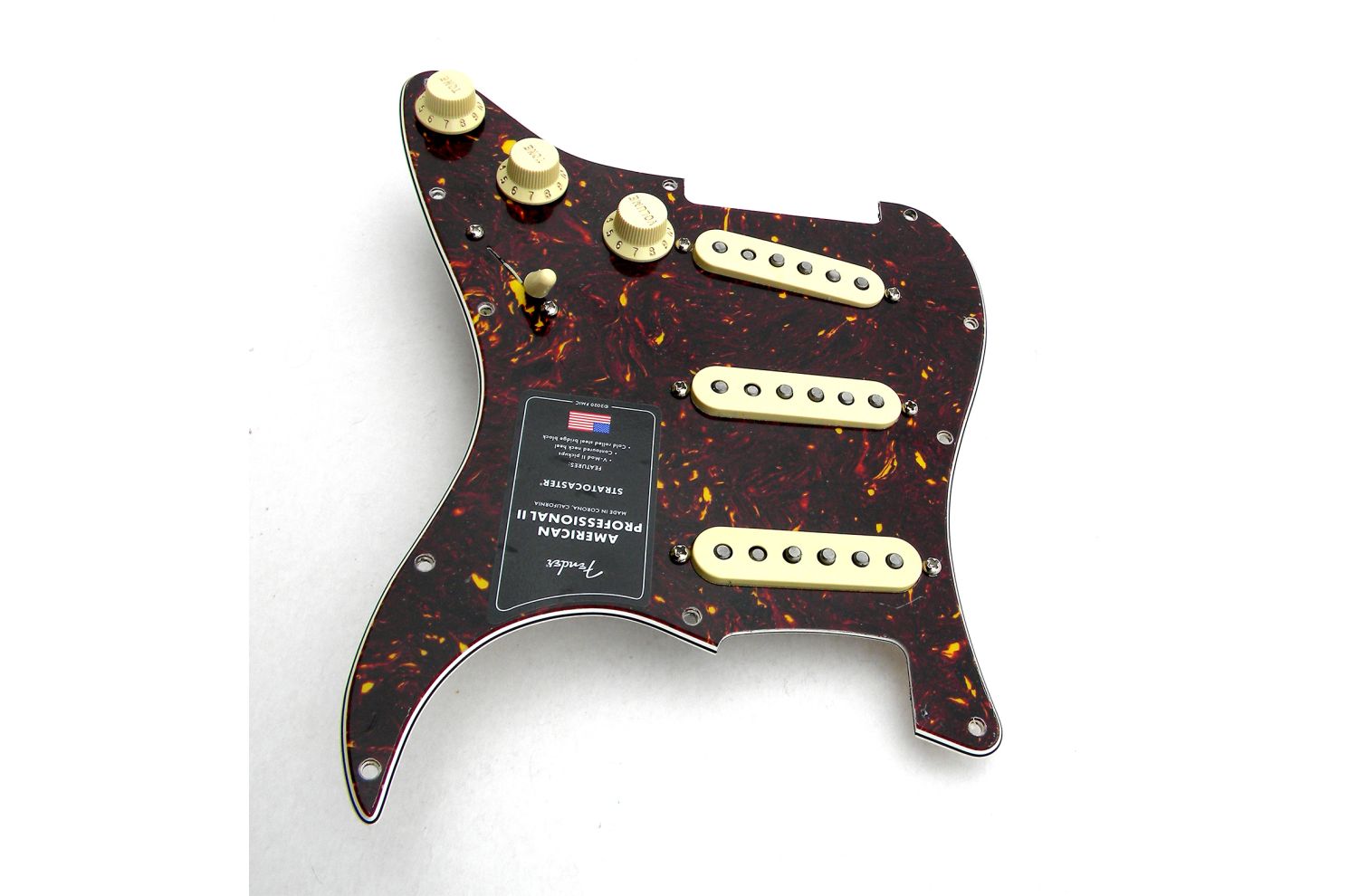 Loaded Pickguard Fender Strat® American Professional 2 Assembly Limited Edition Fat 50's tortoise 4-ply, aged white 11-hole cream covers and buttons, assembled late August 2023.
