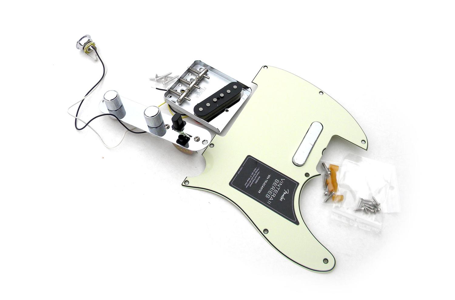 The assembled pickguard comes complete with all its original parts, electronics and hardware to mount on any Mexican or American made Telecaster® body.