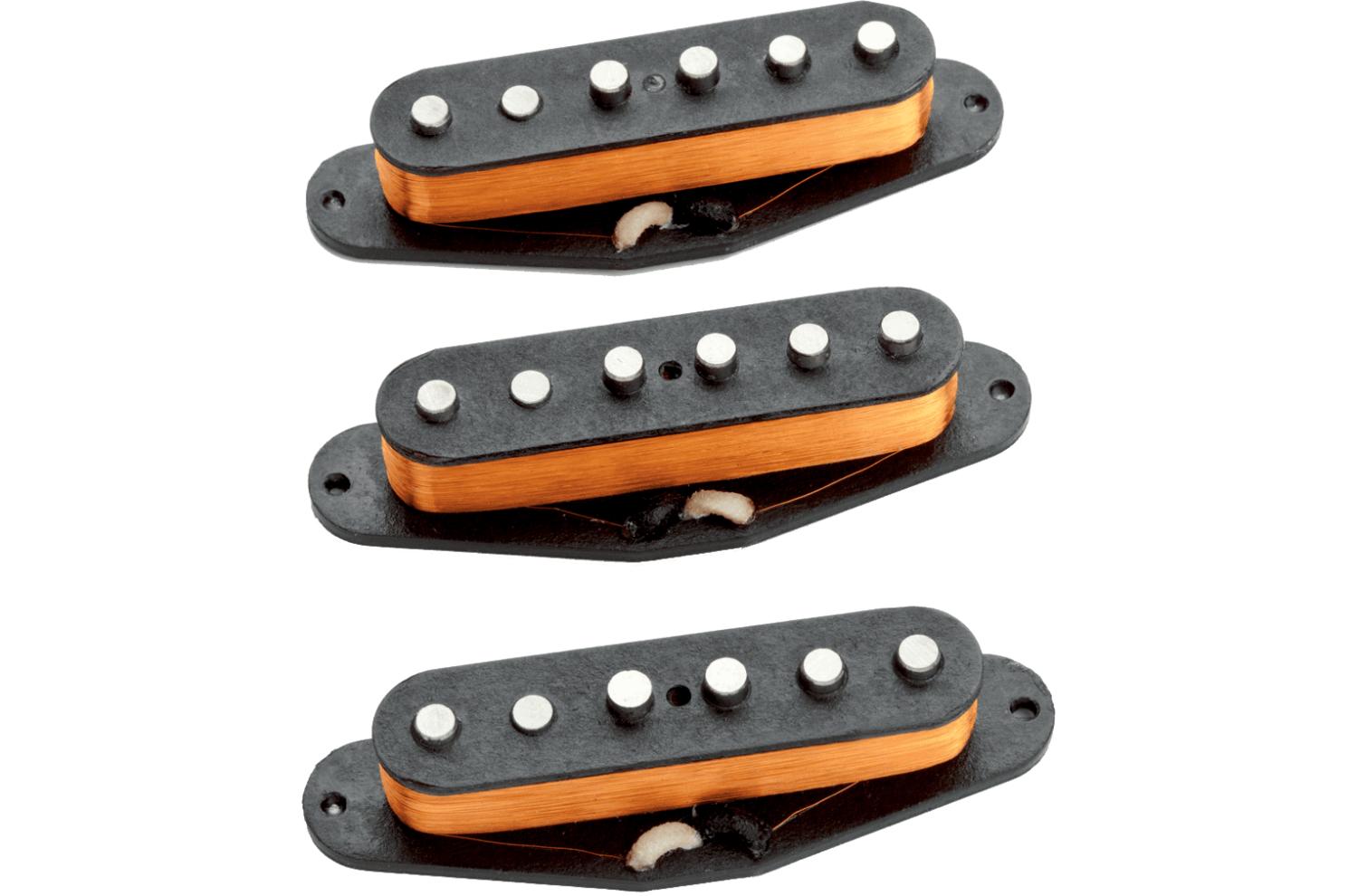 Since 1978, Seymour Duncan has made all of its vintage Fender style single-coil pickups with the correct "flat Forbon" fiber coil color and thickness, as well as period-correct magnetic offset, magnets are hand filed, coils assembled and lacquered as was done during Fender's golden age. Each pickup comes with AWG-42 waxed cloth and tin-plated jumper wires.