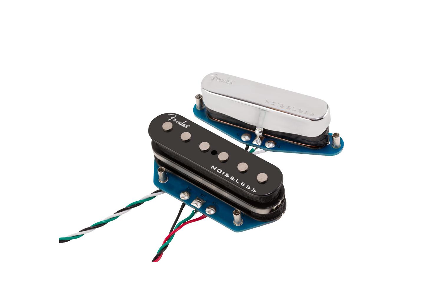 Fender Telecaster Ultra vintage noiseless Pickups set: new generation of vintage -style stacked double-coil pickups for a more lively and wide sound without the hum. Polysol coated winding wire, non-chamfered and non-stepped Alnico 5 magnets.