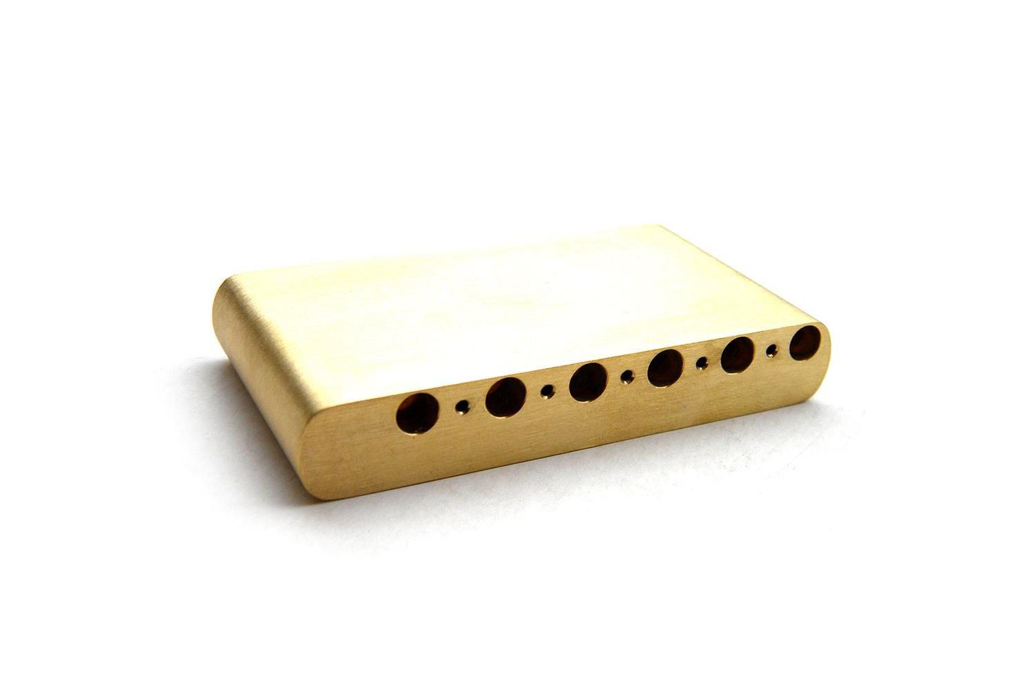 Sustain Brass Block para Fender Stratocaster American Vintage Tremolo, bloque con dimensiones consistentes e idénticas al bloque de acero original Fender vintage : atornillado a una placa de puente con 3 tornillos, 42 mm de alto, 12 mm de espesor, 300 gramos.