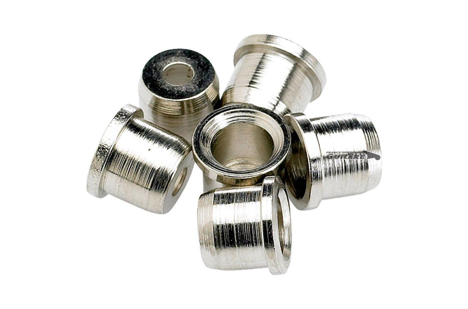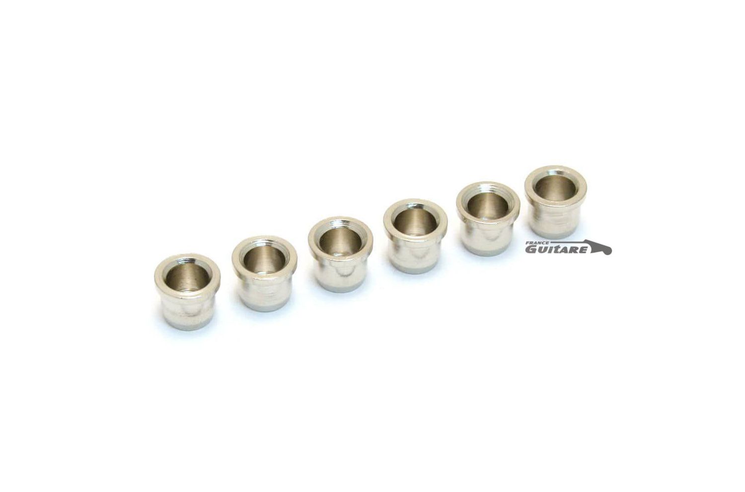 Fender Vintage Original Telecaster String Ferrules String Bushing, Fender fabricado en USA Anillos de retención de cuerdas de níquel a través del cuerpo, bordes lisos, profundidad empotrada = 8 mm.