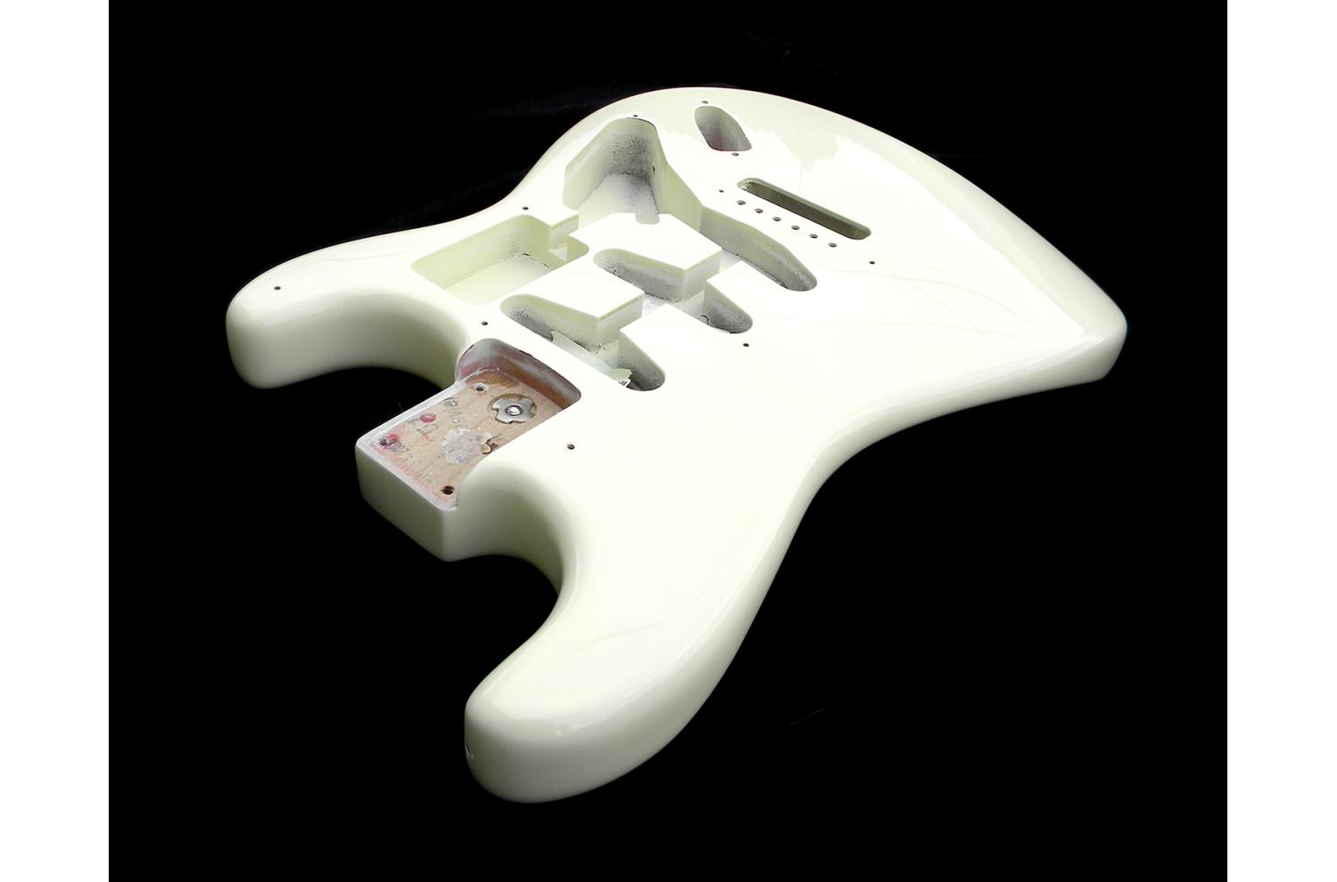 Cuerpo de aliso de 3 piezas (el más común en Fender), cavidad para electrónica activa y ubicación de batería de 9V en la parte trasera debajo de los resortes de vibrato. Contorno y barriga tipo vintage años 50, 45mm de espesor, ligero 1,85Kg. Compatible con todos mástil USA en 22 trastes y series USA vintage en 21 trastes.