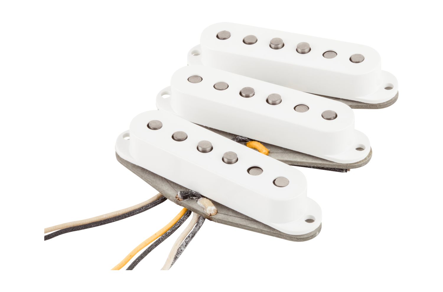 Reproducción de las pastillas instaladas en la Strat® CBS de 1968, imanes Alnico V pero una bobina de fibra gris menos costosa específica para este año de producción que ofrece este sonido tan claro y límpido en los agudos, estas pastillas se adaptan mejor a las cadenas de efectos , ofrecen medios cristalinos pero pronunciados por bellos armónicos, graves profundos, rugientes en los graves.