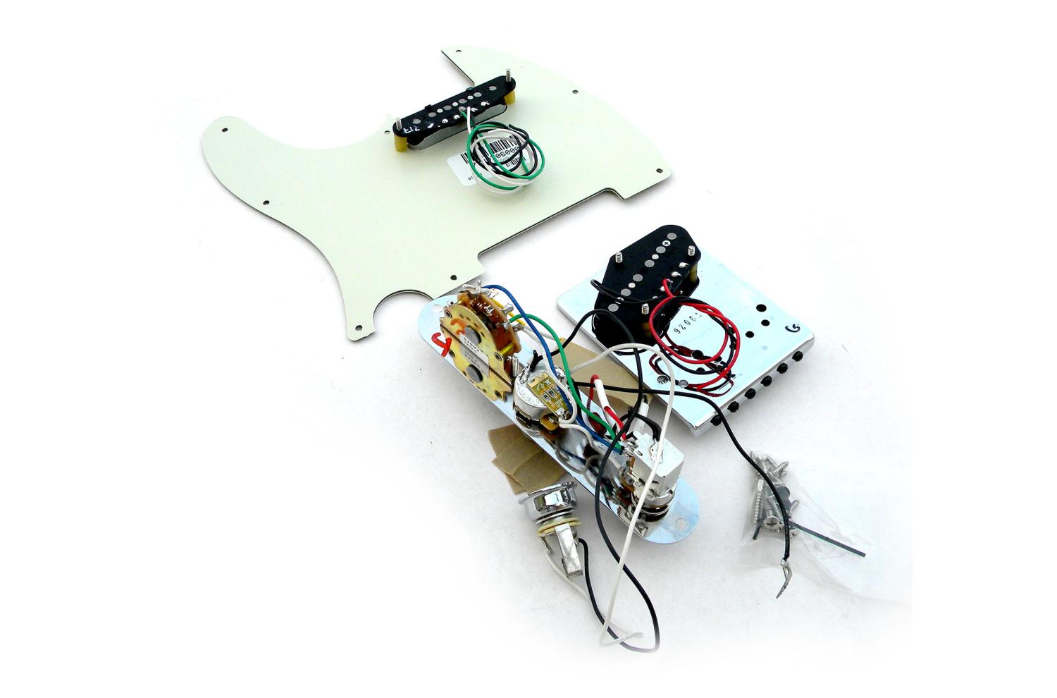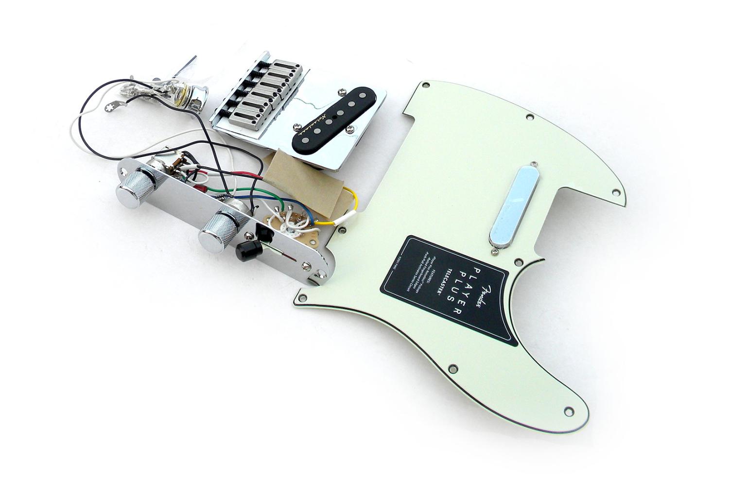 Loaded Pickguard Telecaster Player Plus Noiseless completo con un juego de pastillas Player Plus Noiseless™ específicas, estas pastillas están a medio camino entre "hot noiseless" y " vintage noiseless" , golpeador ensamblado entregado con todo el hardware, golpeador mint green de 8 orificios, controlador cromado con 3 seleccionador de posiciones