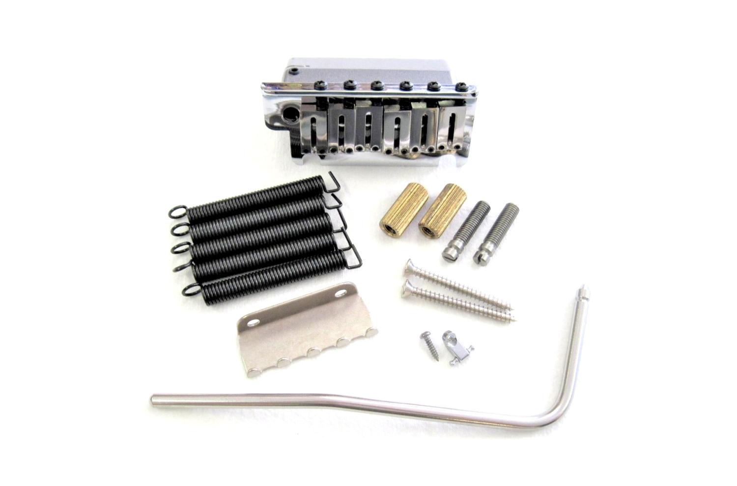 Trémolo Fender Stratocaster Deluxe o Elite Series, silletas de acero inoxidable cromadas, herrajes, peine, pivotes, guía de cuerdas, resortes y brazos de trémolo, silletas cromadas, bloque de luces, brazo "popin" con clip, llave allen .