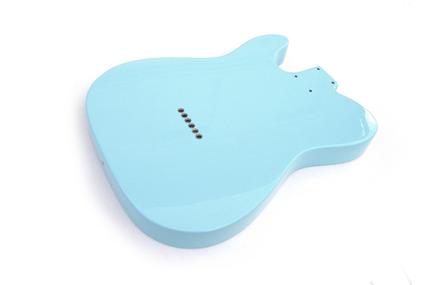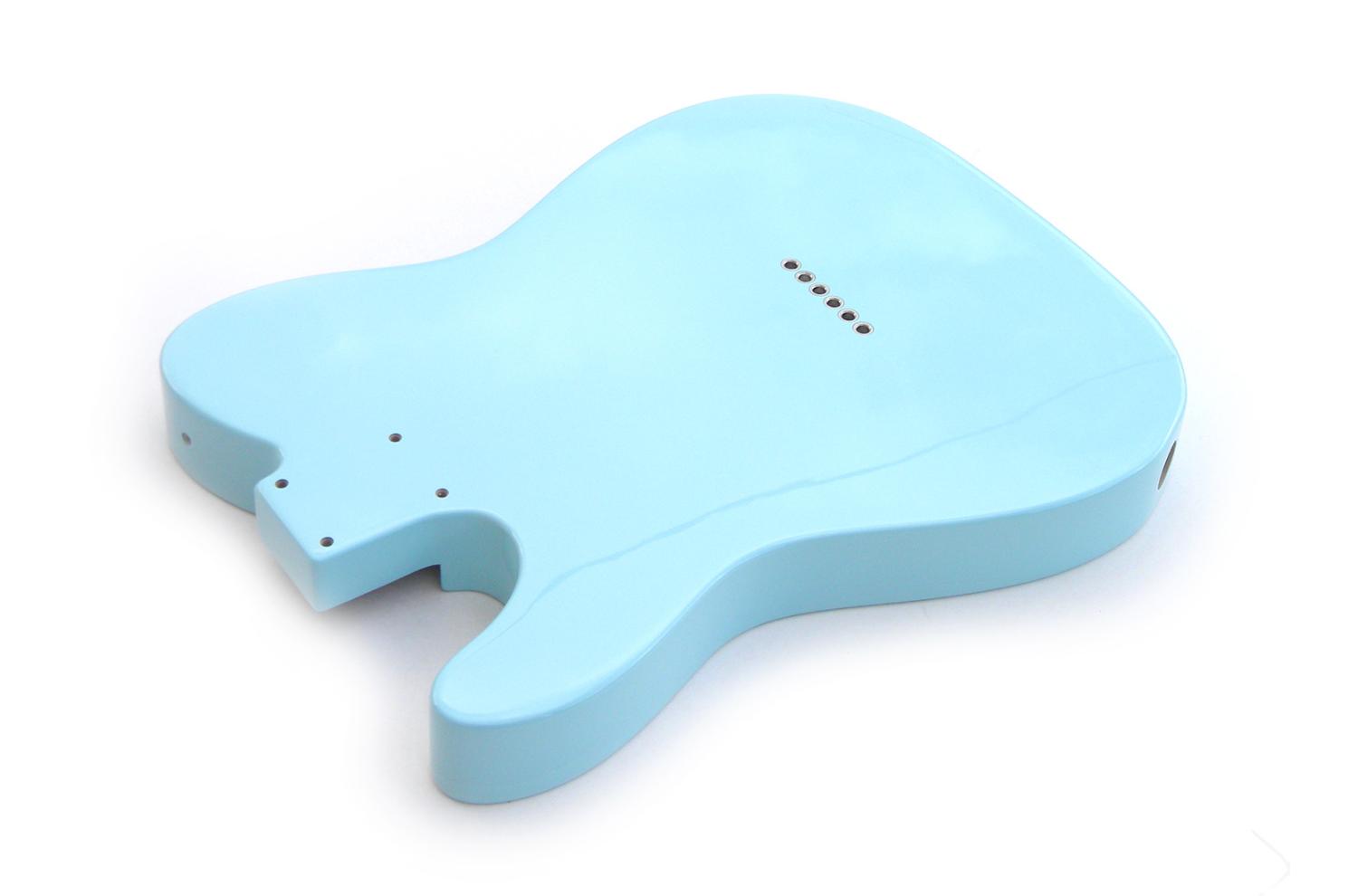 Corps Fender Telecaster Vintera 60's serie 2 Sonic Blue style vintage, vernis brillant polyester, contour body reproduction correcte période 1960-1963, routage pickups SS, aulne sélectionné 2 ou 3 pièces, livré avec oeillets (ferrules) de rétention de cordes.
