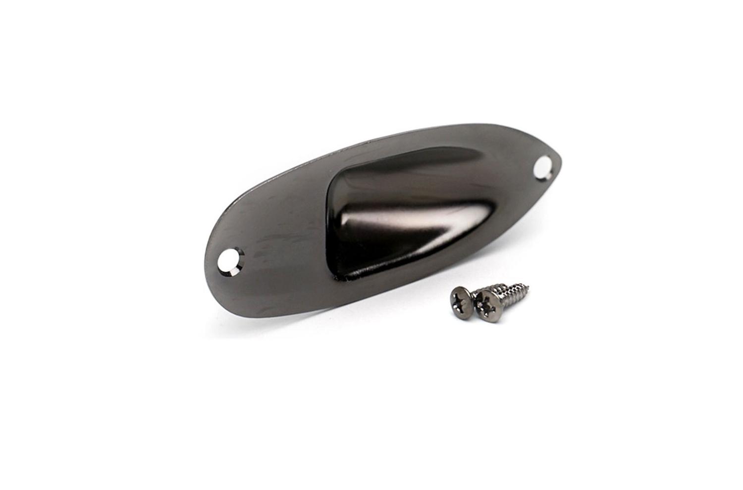 Plaque Embase Jack Gotoh Stratocaster Cosmo Black pour toute Fender Stratocaster. Pièce standard sous licence Fender USA, Japon et mexico compatible tous modèles de Strat en finition black noir brillant effet gris anthracite.